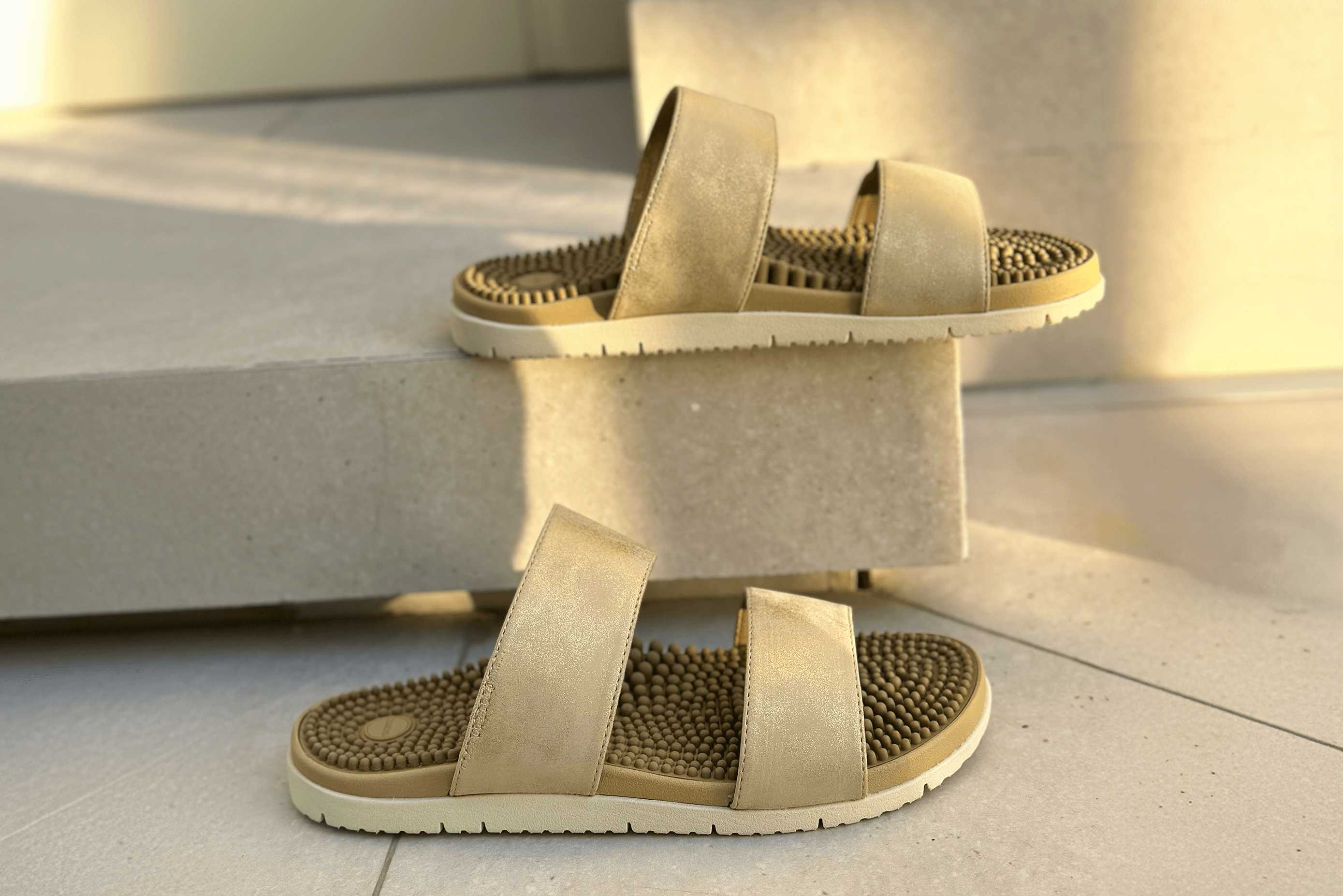 Upgraded Reflexology Footbed:ย Our new collection has an upgraded footbed that is bouncier making it more comfortable to wear all day. Made with finer quality natural rubber material, the new insoles are more durable and long lasting. Each footbed, equipped with 1000 natural rubber nodules, that stimulate reflex points on your feet, enhance blood circulation and reduce lower limb pressure.
